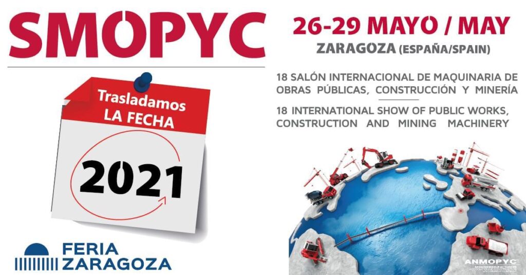 Zaragoza, 22 abril de 2020.- La decimoctava edición del Salón Internacional de Maquinaria de Obras Públicas, Construcción y Minería, SMOPYC, se celebrará finalmente el próximo año, más concretamente del 26 al 29 de mayo de 2021. La organización del certamen, conjuntamente con el Comité Organizador del mismo, han valorado las circunstancias actuales para ofrecer, de este modo, la mejor respuesta para el sector. Es por ello, que se ha trasladado la edición de 2020 que ya fue pospuesta al mes de septiembre de 2020 a la primavera de 2021, con el objeto de dar las mejores garantías tanto para los expositores como los visitantes.