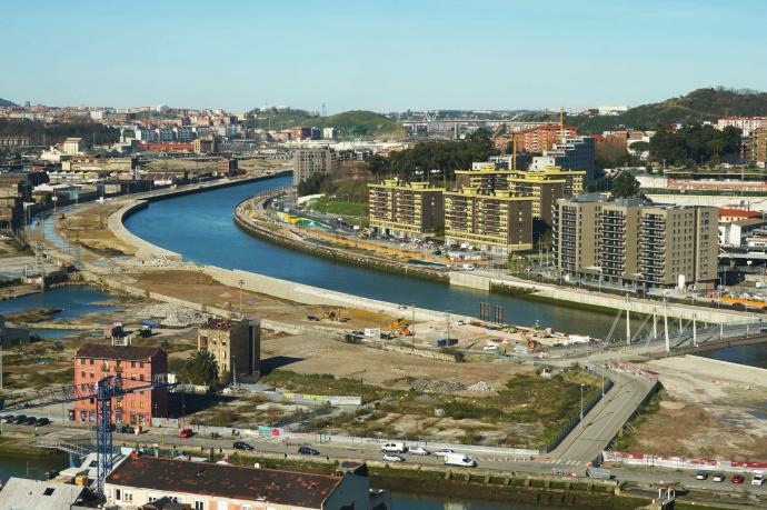Una grúa colocará a 115 metros de tierra la nueva punta de la isla de Zorrotzaurre